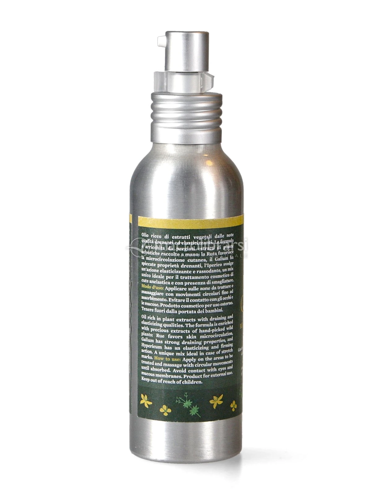 La formula è arricchita da pregiati estratti di piante selvatiche raccolte a mano: la Ruta combatte la stasi venosa e rinforza i capillari, il Galium agisce sul sistema linfatico con una spiccata azione drenante, l’Iperico previene la formazione delle smagliature.
